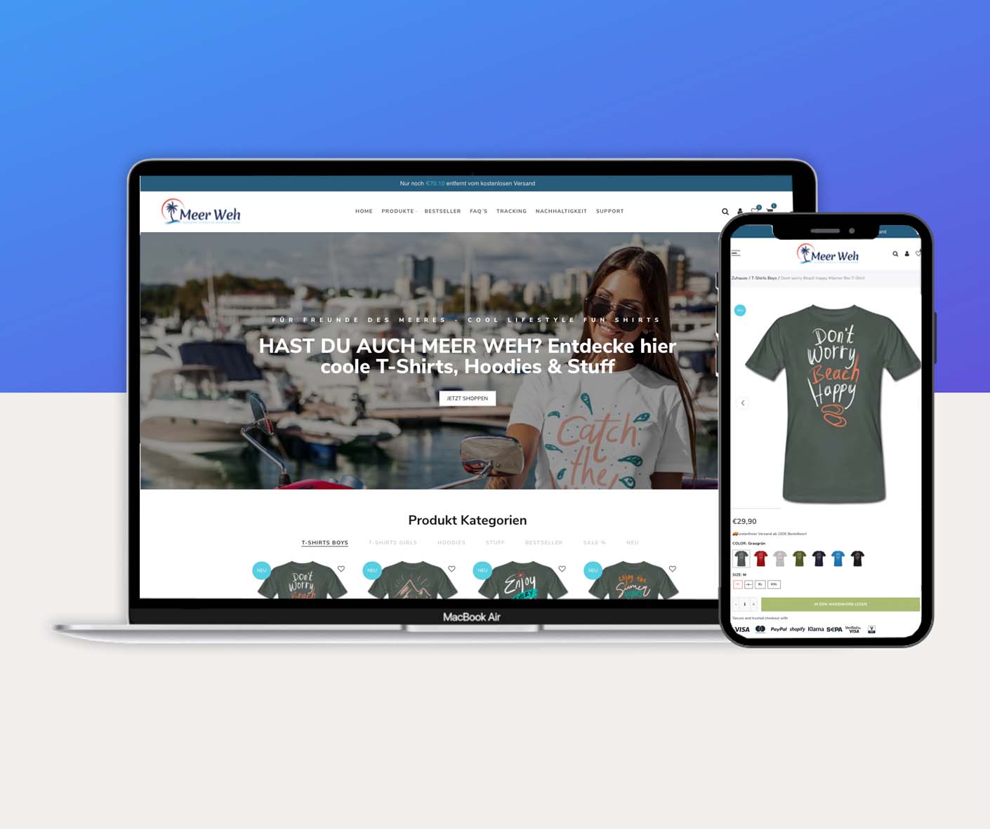 Hinweis: der Shop kann nur 1x erworben werden. Der Name Meer Weh inkl. der Domain und den Designs verfügt nur über 1 Lizenz, die an den Käufer übertragen wird.